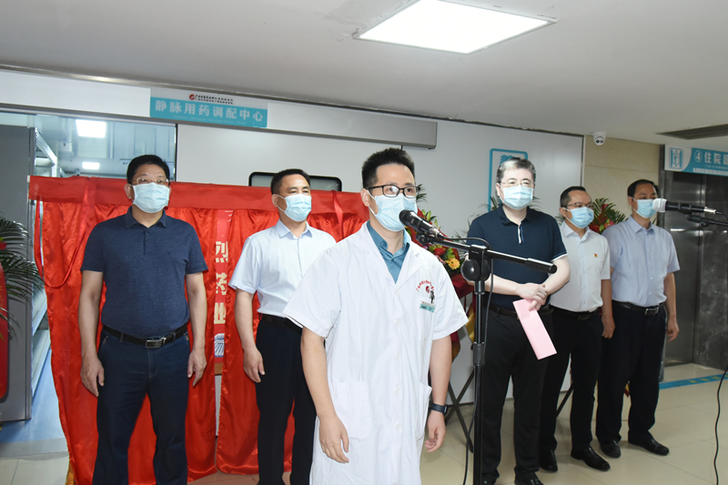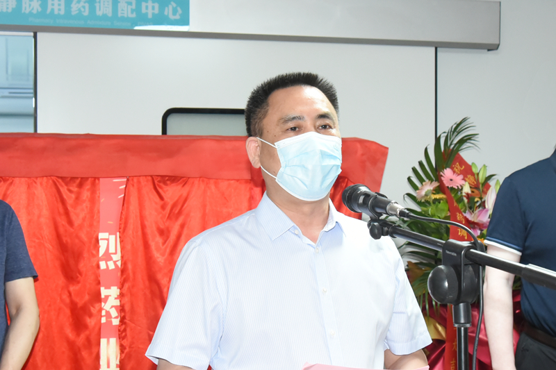 唐友明在仪式上致辞,他表示,静脉用药调配中心是当今大型综合医院必不可少的科室之一,对规范临床静脉用药的集中调配,具有非常重要的意义。他对静脉用药调配中心的建设和发展提出几点建议:一是要进一步发挥药师专业特长,不断钻研,将学科做大做强;二是要加强药品质量控制,关注用药安全,不断改善药学服务质量;三是要强化人才队伍建设,提升核心竞争力。