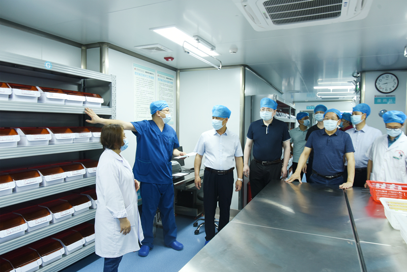 开业仪式后,与会领导先后来到普通及肠外营养药物配制间、抗菌药物和危险药物配制间、审方打印区、排药准备区、成品核对区参观指导,对中心开业后的建设和发展作出具体的部署和指示。