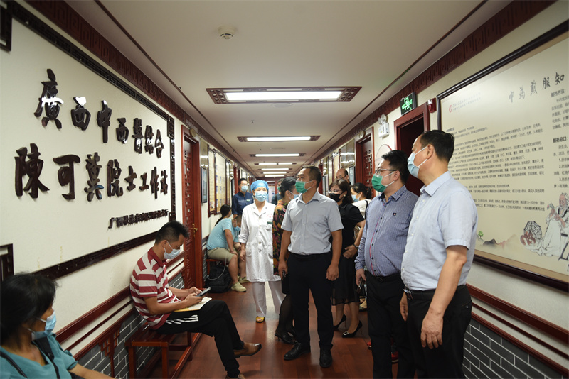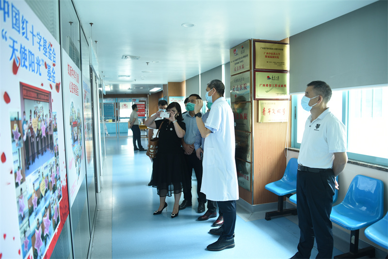 随后,梁晋云总经理助理一行六人在副院长韦思尊、陈锋的陪同下参观了我院胸心血管外科、中医药博物馆、国医堂、射波刀治疗中心等地。
