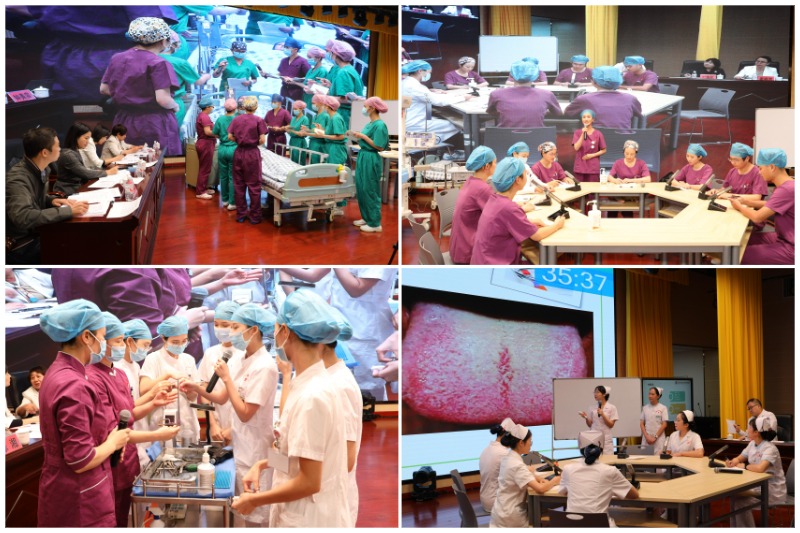 在比赛环节,各支教学团队同台竞技,参赛选手通过情景模拟、案例导入、现场查体、互动提问等方式开展了多形式的临床护理教学查房,细微处体现人文关怀,彰显了教学查房的内涵,展示了深厚的教学功底和我院护理师资队伍的风采。