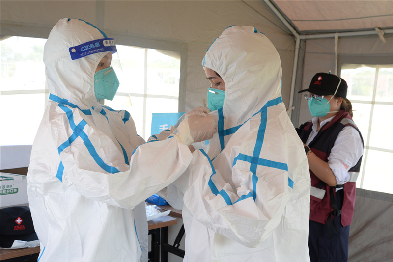 演练现场设置了根据传染病防治的需要设置了指挥帐篷、物资帐篷、更衣室帐篷、一脱间帐篷、医护工作帐篷、抢救、处置帐篷、预检分诊帐篷、核酸采样帐篷、等候区帐篷等,并完善了工作制度和管理流程,确保帐篷方舱医院各环节运行顺畅,各工作组间的协作与配合良好。