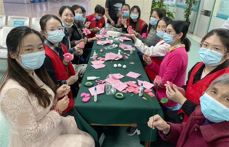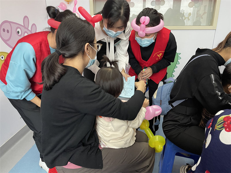 我院志愿服务队定期走进病房,为住院患者提供轻松解压,缓解忧愁的娱乐活动,帮助患者协调保健身体与心理健康。同时,促进医患之间的沟通与交流。