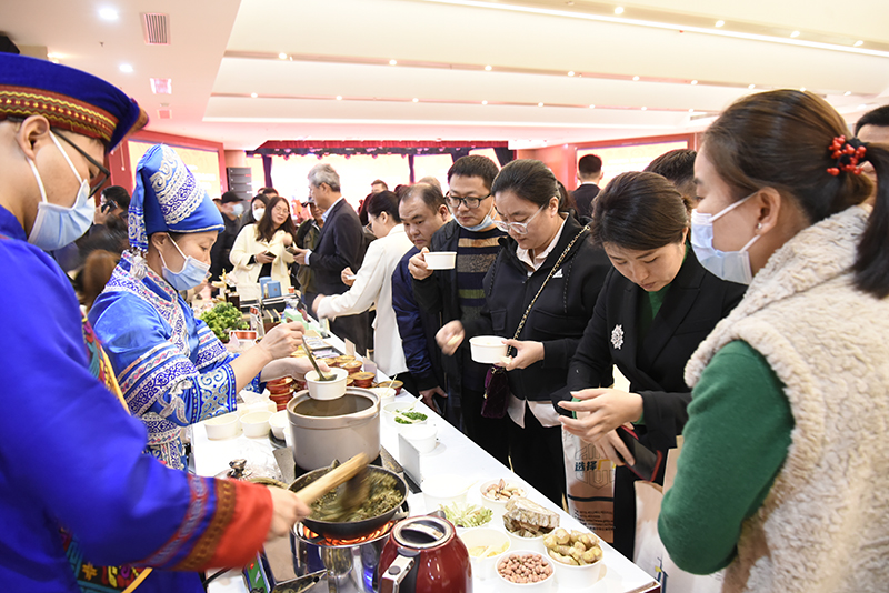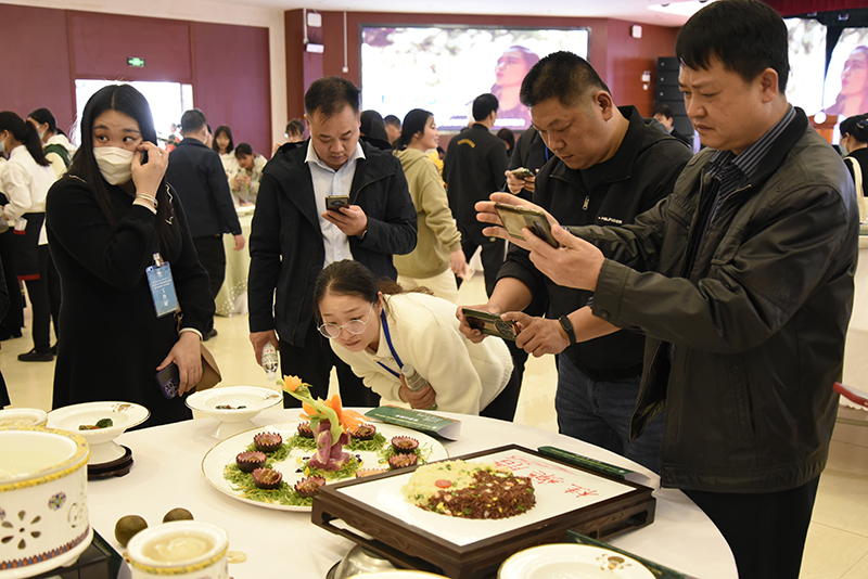 产品展览展示环节,我院现场制作的瑞康葛根油茶以及菜品龟鹿二仙肴、果香山楂骨、黄芪太极饭、清心润肺汤凭借独特的色、香、味、形、意(境)、器(皿)、效博得现场观众的连连称赞,推出的阿胶糕、四季养生膏、温中补益猪肉干等产品也广受好评,纷纷为我院投下宝贵的一票。