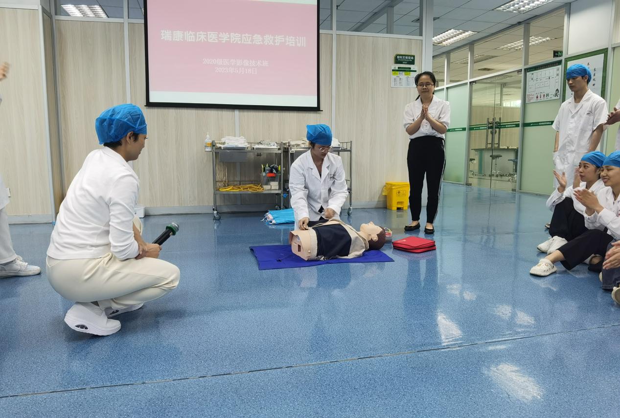 为扎实开展学习贯彻习近平新时代中国特色社会主义思想主题教育,号召广大党员干部职工立足岗位作贡献,促进医院高质量发展。5月18日下午,2020级医学影像技术一班在图书馆实训中心三楼开展“急救知识——心肺复苏”应急救护实训培训课程。