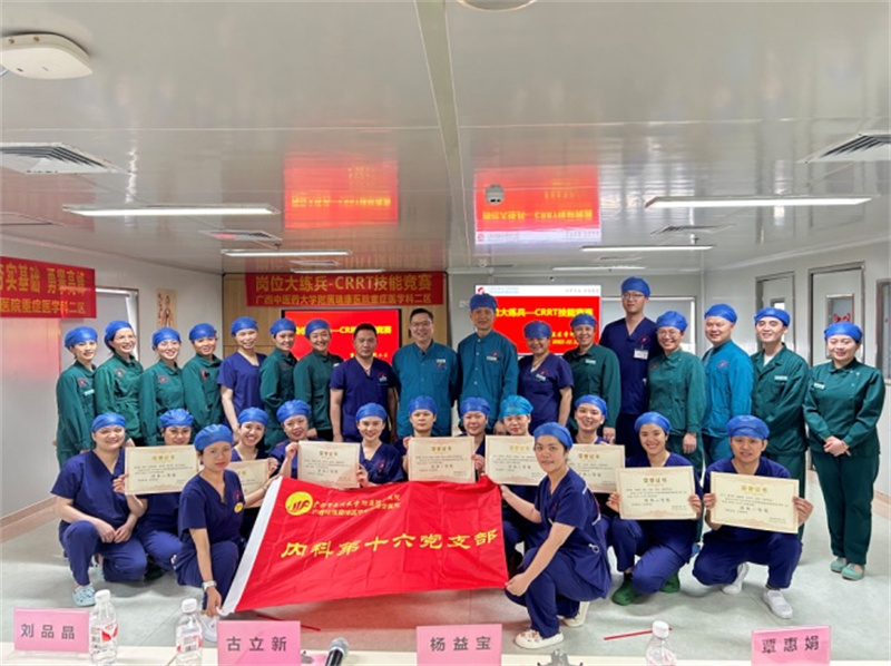 近日,内科第十六党支部举办主题为“党建引领夯基础, 提升技能显卓越” 的重症技能岗位大练兵——CRRT技能竞赛,以强化护理知识、基本功训练,巩固基础服务质量,提升护理队伍整体素质,提升患者满意度。竞赛由党员莫慧娟担任主持人,重症医学科二区古立新主任,内科第十六党支部书记杨益宝副主任,刘品晶副主任、覃惠娟护士长担任此次竞赛评委。
