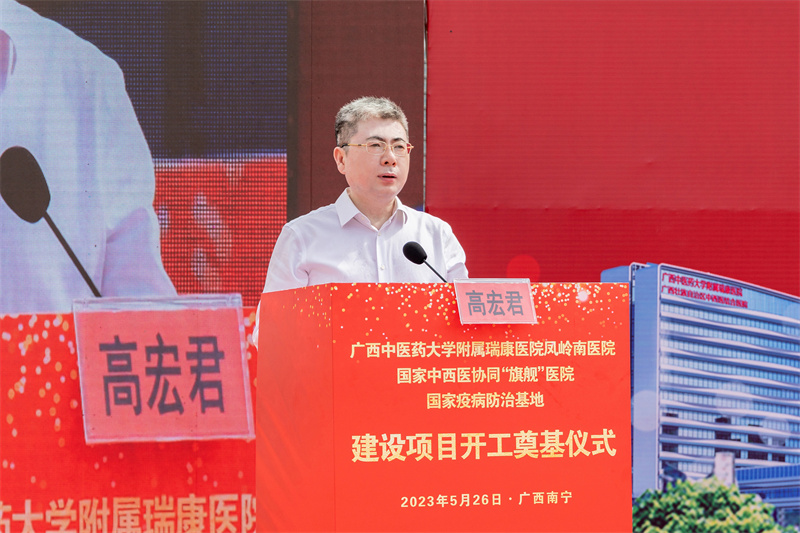 广西中医药大学附属瑞康医院党委书记高宏君宣布:广西中医药大学附属瑞康医院(广西壮族自治区中西医结合医院)凤岭南医院暨国家中西医协同“旗舰”医院、国家疫病防治基地建设项目正式开工!
