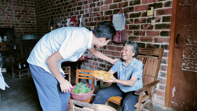 当天下午,驻村第一书记、工作队员和村委会将煮好的粽子,分别送到村里80岁以上老人、低保户等的家中,将节日的问候传递到他们的手中,让他们感受到党和政府的温暖。“你们都那么忙还想到为我们送来包好的粽子,你们工作真细致,太感谢啦。”村民赵阿姨高兴地对驻村第一书记谢观增说。