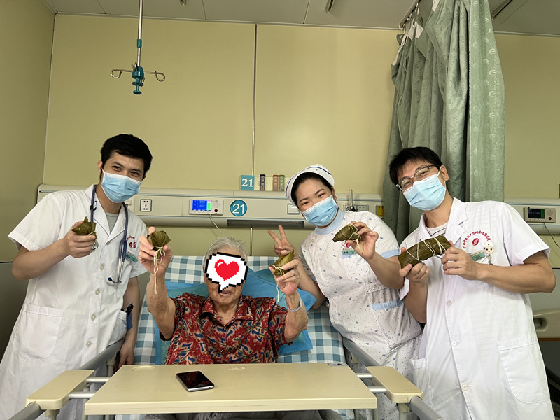 病友邓爷爷的家属是一位退休的医护人员,从医护身份转换到家属身份的她,这次也深深地感受到了科室的凝聚力和对患者的关怀,让患者在住院时也能感受到节日的氛围。短短两个小时的活动,让患者及家属都感受到医护人员的温情与关怀。