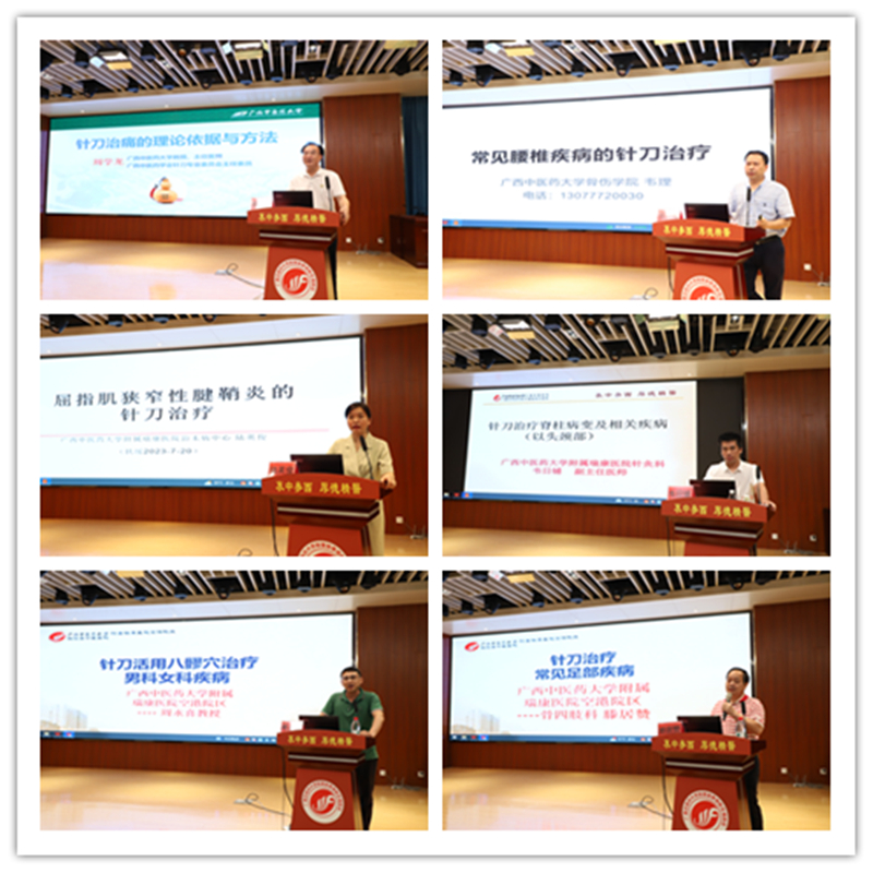 本次培训班为期三天,采取理论教学与实践教学相结合的模式,培训分别由广西中医药大学骨伤学院周学龙教授、韦理教授,广西中医药大学附属瑞康医院治未病中心陆英俊教授,广西中医药大学附属瑞康医院针灸科韦日铺教授,空港院区周永喜、滕居赞、韦冬生等区内知名针刀医学专家授课,他们围绕针刀医学基本原理、诊疗规范、常见病的诊疗方式及适应症选择进行了专题报告、现场操作示范。与会人员发表各自的真知灼见,在讨论与交流中不断提升针刀医学理论和实践经验。40多名学员都表示受益匪浅,回到工作岗位后要积极把这项适宜技术应用好、推广好。