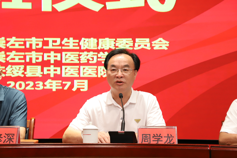 周学龙在讲话中对本次针刀技术师资培训班顺利开班表示祝贺,他指出针刀是一门实用技术,针刀医学的诞生和发展实现了将大量疾病从不治变为可治。通过这次培训班,学员们可以学好、用好、发扬好针刀技术,大大提高整个崇左基层中医药服务能力,对完善中医药服务体系具有很好的现实意义。
