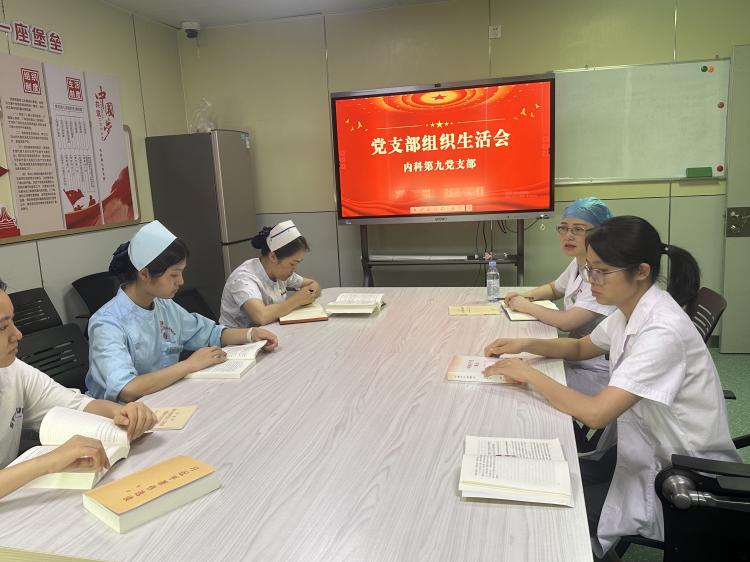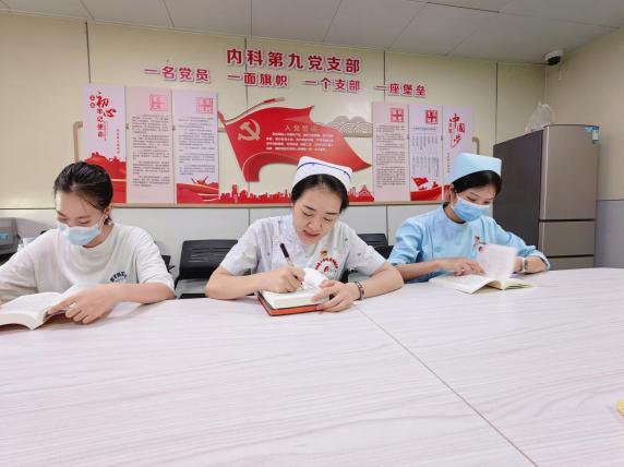 内科第九党支部多次组织党员学习理论知识,支部书记唐晓带领全体党员同志学习《习近平谈治国理政》第三卷《论把握新发展阶段、贯彻新发展理念、构建新发展格局》《论坚持推动构建人类命运共同体》等理论图书,引导支部党员学深悟透,在推动学习习近平新时代中国特色社会主义思想走深走实上下功夫,从思想上正本清源、固本培元,增强“四个意识”、坚定“四个自信”、做到“两个维护”,始终在思想上政治上行动上同党中央保持高度一致,做到心往一处想、劲往一处使,共同把党支部锻造成一块攻无不克、战无不胜的坚硬钢铁。