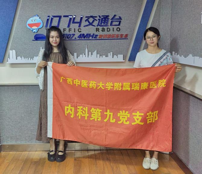 健康中国,科普先行。7月10日, 内科第九党支部李锦颜同志参加南宁1074交通台《健康南宁》节目,科普三伏天中医养生知识,并回答听众们的问题,将中医养生知识传播给大众。