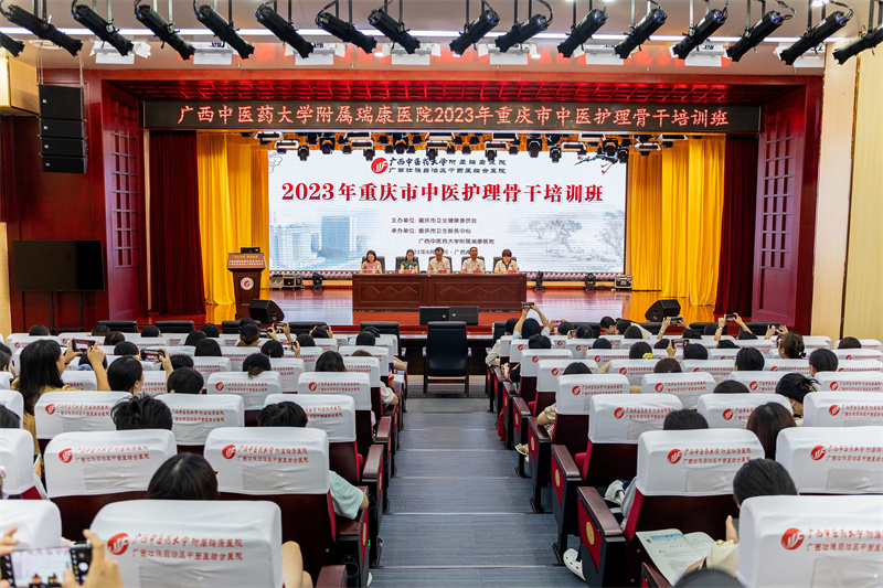 潘霜副局长在讲话中对“2023 年重庆市中医护理骨干培训班”学员的到来表示欢迎,感谢重庆市卫健委对广西中医护理的信任,同时对我院为“2023 年重庆市中医护理骨干培训班”的顺利开班所做的精心筹备表示肯定。他说,党的十八大以来,中医药正面临前所未有的发展机遇,广西也制订了一系列促进中医药传承发展的措施。自治区中医药管理局一直高度重视中医护理工作,他希望以本次培训班为契机,进一步深化桂渝两地的中医文化交流合作,同时也希望学员们在邕学习期间能学有所成,满载而归。