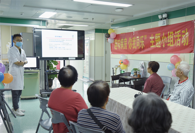 为丰富老年病友的住院生活,营造温馨愉悦的病房氛围。8月30日下午,我院心血管内科二区联合社工部开展“趣味病房 你我同乐”主题活动,心血管内科二区护士长吴艳林、主治医师朱海波、社工部医务社工、志愿者以及部分病友及家属参加了活动。