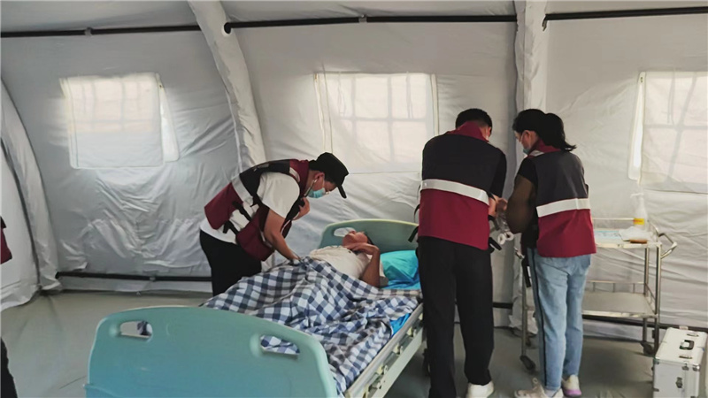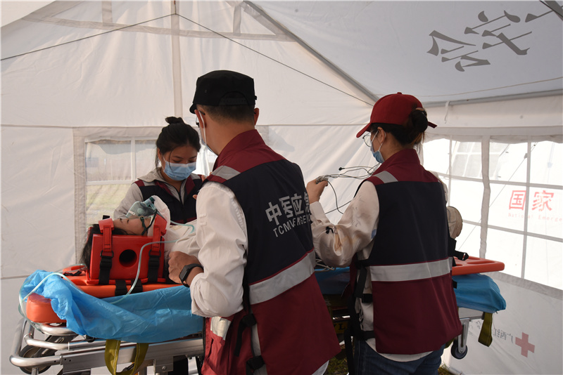 中国红十字会总会赈济救护部部长边晓到医疗队营地观摩演练