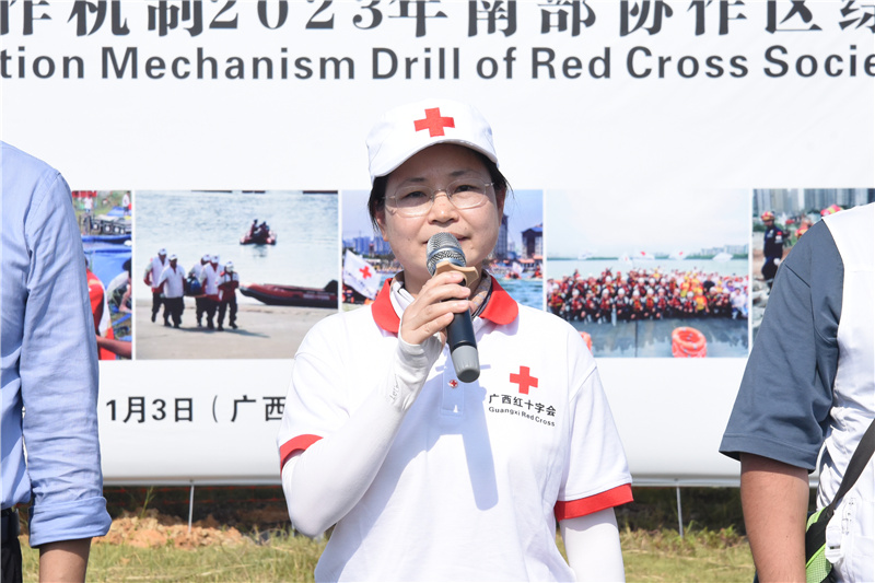 广西红十字会党组成员、副会长伍丽东到场观摩演练并讲话