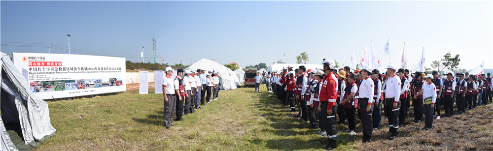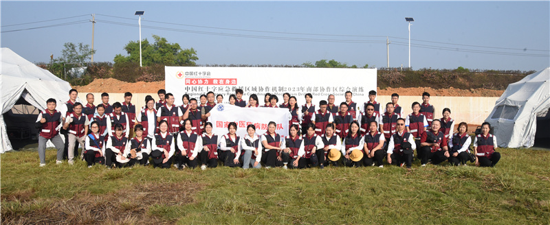 为检验国家红十字会南部协作区、广西国家中医疫病防治队的应急处置能力,提高应急医疗队伍实战水平,10月31-11月2日,中国红十字会应急救援区域协作机制2023年南部协作区综合演练在南宁举行,依托广西中医药大学附属瑞康医院建设的广西国家中医疫病防治队伍作为医疗救援队参加综合演练。中国红十字会总会赈济救护部部长边晓、副部长吴宏军,广西红十字会党组成员、副会长伍丽东到场观摩演练。来自广西国家中医疫病防治队及中国红十字会南部协作区(广西、广东、江西、湖南、海南)组成的赈济救援队伍共256人参加演练,其中广西国家中医疫病防治队队员60人。