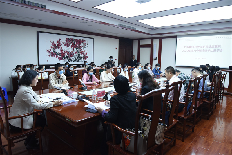 为全面了解学校2024届各专业学生的毕业实习近况,加强对实习生的教育管理,解决实习中存在的问题,确保实习教学质量,11月29日下午,学校党委副书记、纪委书记覃宇环率检查组一行12人到我院进行2023年实习中期检查并召开座谈会。我院党委书记高宏君、纪委书记黄建民及各教研室主任和秘书,科室主任、教学主任、教学秘书、临床带教老师、督学专家代表及相关职能部门负责人参加座谈会。