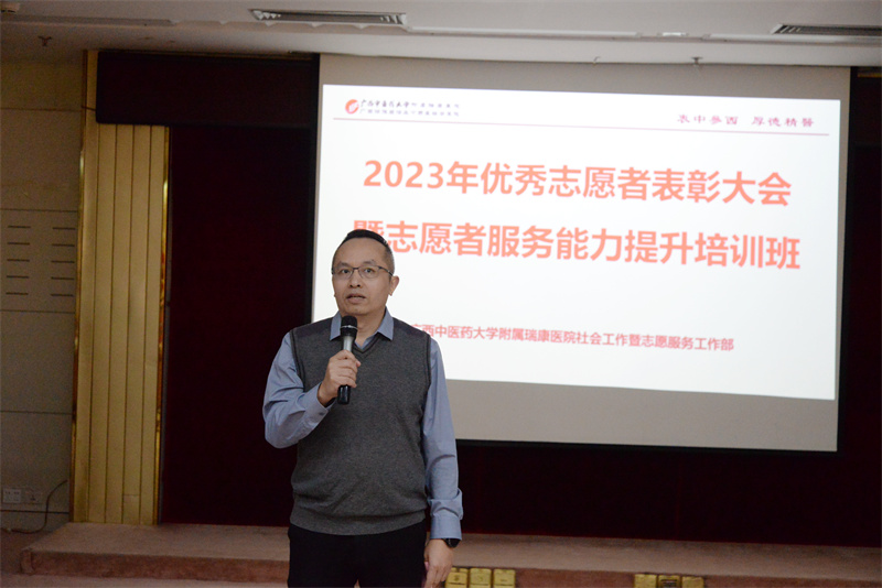 为大力弘扬“奉献、友爱、互助、进步”的志愿服务精神,进一步提高我院志愿者综合素质,更好地服务患者,营造温馨良好的就医环境,12月8日下午,我院社工部在B座23楼举办了2023年优秀志愿者表彰大会暨志愿者服务能力提升培训班。医院纪委书记黄建民、社工部主任叶修廷、团委书记蒋娴以及100余名青年志愿者参加了本次培训。