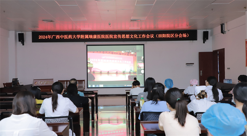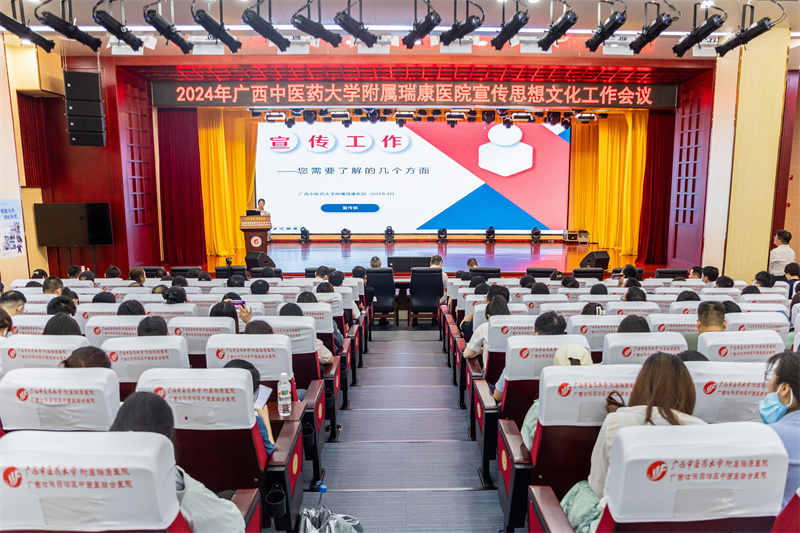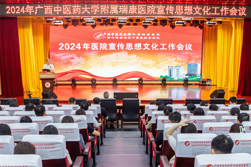 为深入学习贯彻党的二十大精神和习近平文化思想,总结医院宣传思想文化工作的成绩与经验,表彰先进并进一步提升宣传思想文化工作水平,4月25日下午,我院在B座十楼学术报告厅召开2024年广西中医药大学附属瑞康医院宣传思想文化工作会议。医院党委书记高宏君、纪委书记黄建民出席会议。本次会议邀请新华社新华网广西分公司负责人、主任记者潘强和南宁师范大学新闻与传播学院教师、导演邹舟进行授课。各党总支、党支部宣传委员,各临床、医技科室通讯员及部分规培学员,宣传部全体人员参加会议。田阳院区、空港院区通过视频直播的形式参加会议。会议由宣传部主任覃华芳主持。