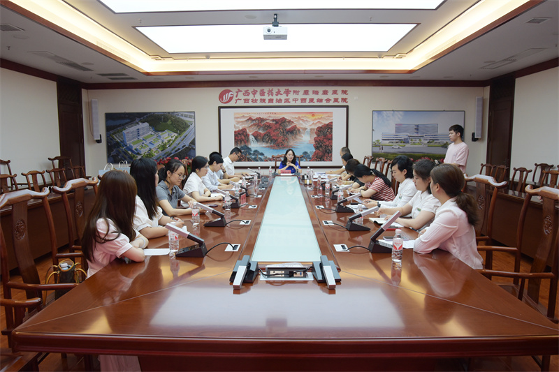 为贯彻落实习近平总书记关于青年工作重要思想和对广西重大方略要求,提升区直团组织的凝聚力和战斗力,根据区直团工委工作部署,为进一步发挥第三协作组职责和优势,更好地推进“3+1”工程品牌工作,选取第三协作组部分成员单位召开推进会,5月24日上午,区直机关共青团第三协作组“3+1”工程品牌工作推进会在我院B座9楼中心会议室召开。自治区直属机关团工委书记宋小岑、南宁海关团委书记刘振奕、自治区卫生健康委团委副书记廖中强、国家统计局广西调查总队团委书记邹旭滨、自治区应急管理厅团委委员陈玲艳、广西北部湾国际港务集团团委书记唐秋静、广西国宏经济发展集团有限公司团委书记黄美玉、中国检验认证集团广西有限公司团委副书记李玲等一行到我院调研交流并召开座谈会。我院党委书记高宏君,党委副书记、副院长陈日兰,纪委书记黄建民以及我院青年文明号号长、部分青年团干参加会议。