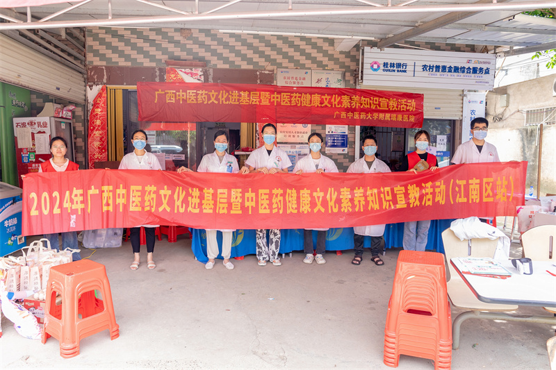为贯彻落实广西中医药健康文化素养调查监测工作相关文件精神,进一步提升我区人民群众的中医药健康文化素养,5月27日上午,我院宣传部、医疗服务部组织妇科、正骨推拿理疗科、针灸科等科室专家团队来到南宁市江南区群益社区开展广西中医药文化进基层暨中医药健康文化素养知识宣教活动,为周边居民诊疗的同时,向他们普及中医药健康知识。