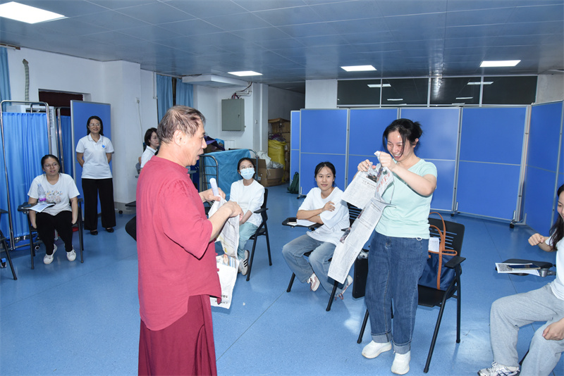 活动伊始,资深心理专家李祖枢以轻松愉快的破冰游戏开场,迅速让医院护理人员进入状态。接着,他运用精湛的心理无痕技术引导现场参与人员敞开心扉,重温过去时光中或好或坏的记忆,让大家从满腹抱怨转变为面带微笑,懂得与过去的经历和解。最后,李祖枢通过角色扮演、情景模拟和团队协作等心理实际训练来帮助护理人员认识自己的心理需求和问题,并学会采取积极的心理调适策略,从而促进身体和心灵的平衡发展。