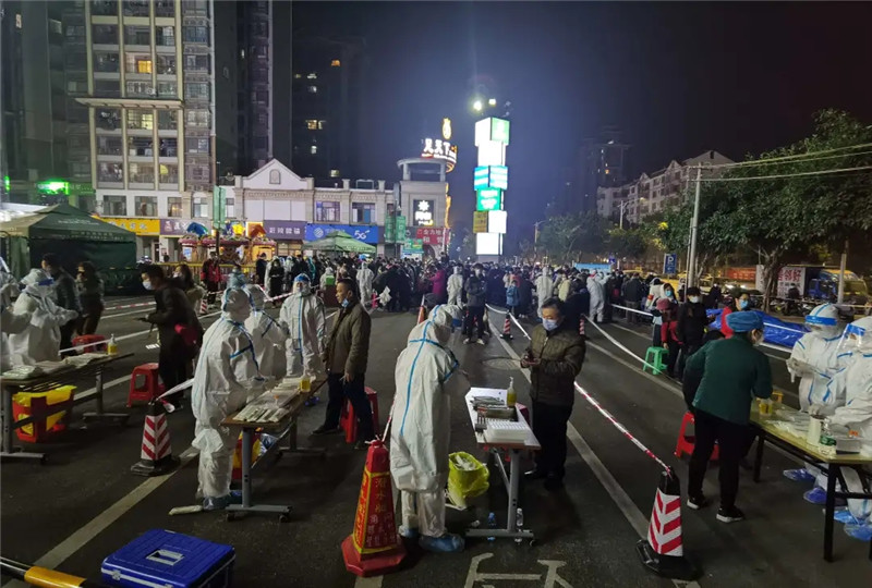 1月15日晚上,为进一步摸排人员,做到精准防控,南宁市对开展精确大规模核酸检测进行了再部署,我院在接到抽调核酸采样人员赴北大南社区、水悦龙湾社区、新阳街道社区开展核酸采样工作的通知后。医院积极响应,紧急行动,短短半小时,100人应急采样队伍就集结完毕,分三组按时出发前往检测区,医院领导也奔赴现场指导工作。应急采样队抵达目的地后,便按照上级工作安排,高标准、严要求,迅速投入到采样工作中,采样工作一直持续到第二天。