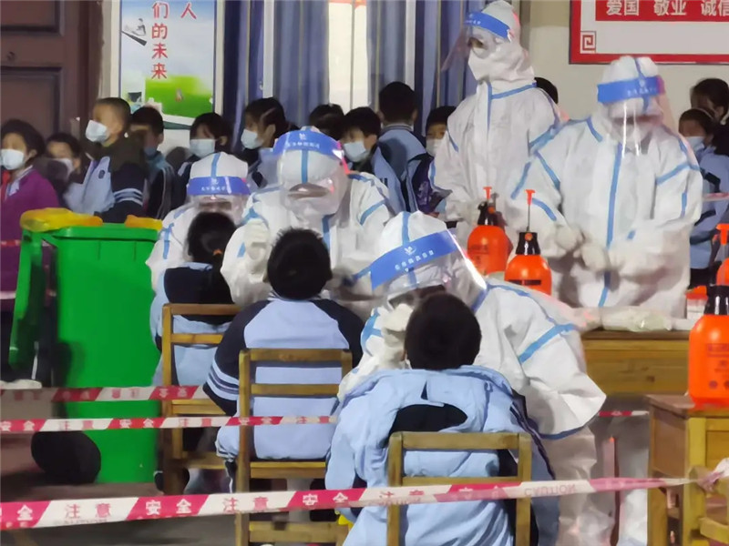 瑞康采样分队被安排在虎邱村内的东城小学校园内进行采样,采样对象主要是以小学、幼儿园及周边居民为主。到达现场后,采样小分队分成六组,有条不紊地开展采样工作。第一批采样小分队从下午4点40出发,一直工作至夜间12点,之后,我院第二批13人采样小分队接棒,在援鄂“老兵”覃惠娟的带领下继续奋战至凌晨4点,顺利完成上级布置的任务。