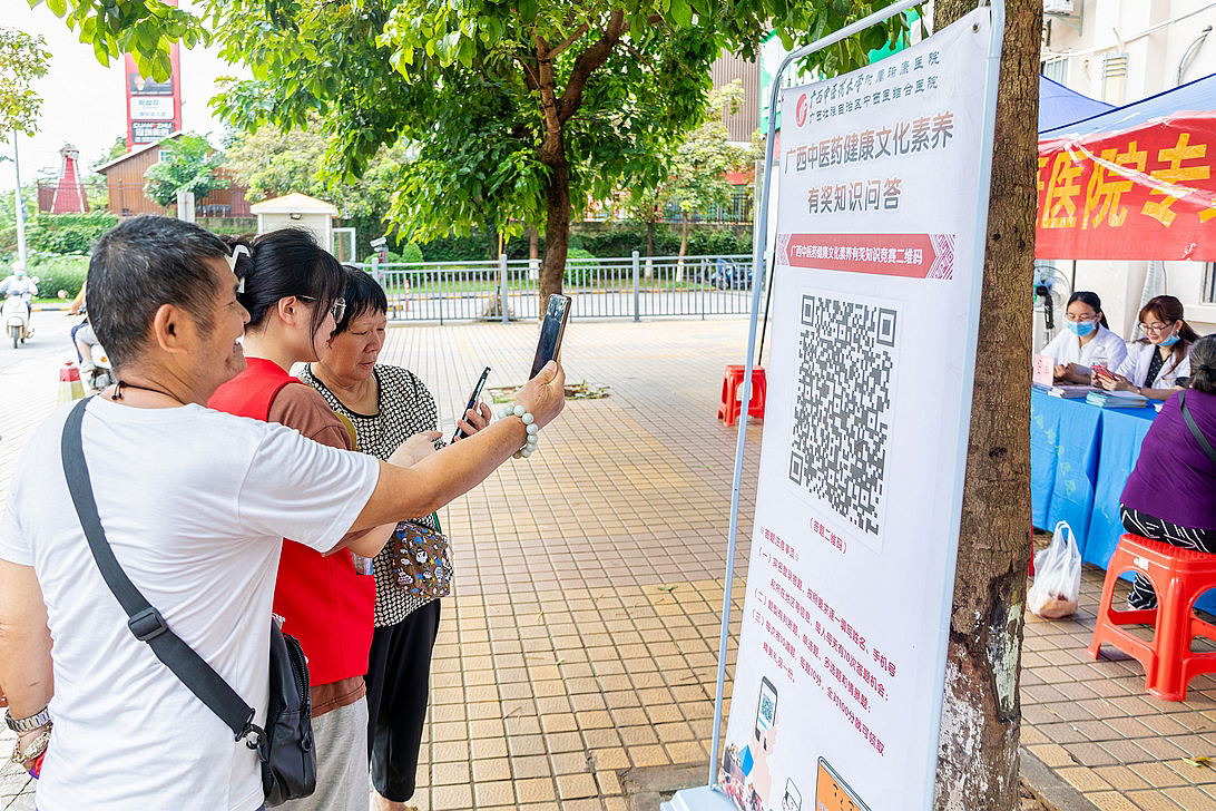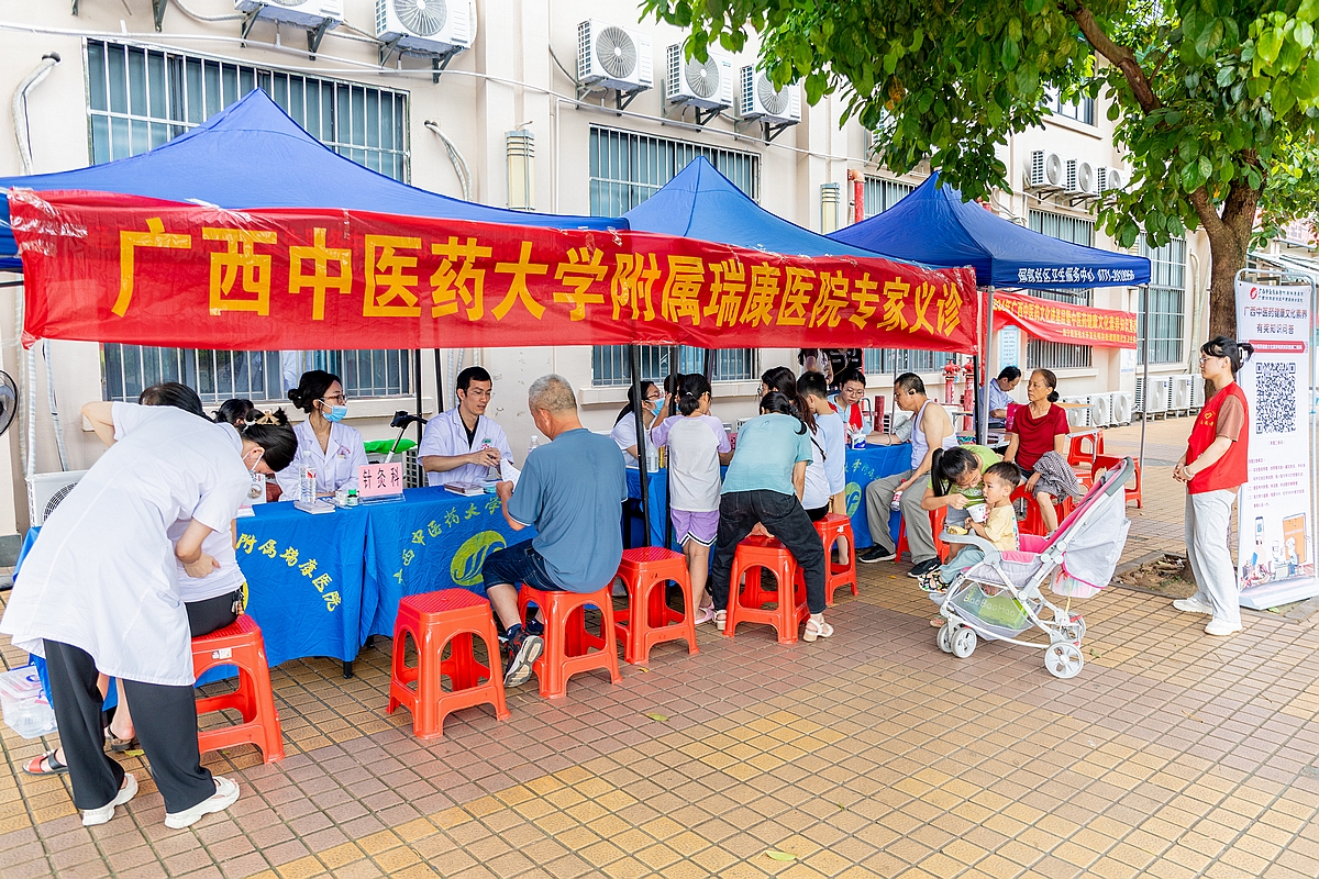 为贯彻落实广西中医药健康文化素养调查监测工作相关文件精神,进一步提升我区人民群众的中医药健康文化素养,6月23日上午,我院宣传部、医疗服务部、社工部组织老年病科、妇科、针灸科、正骨推拿科等科室专家团队来到南宁市江南区国凯社区卫生服务中心开展惠民义诊暨广西中医药健康文化素养知识宣教活动,用实际行动把优质医疗资源送到基层老百姓家门口,将易于掌握、便于接受的中医药健康文化素养知识普及到群众身边。