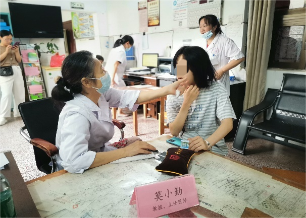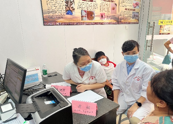 义诊环节,唐耀平教授热情地询问患者病史、仔细检查,结合自己丰富的临床经验,针对患者的病情开具中药处方,并给出个体化的治疗建议 。慕名而来的就诊患者络绎不绝。“我就想让唐主任给我把把脉……”“按唐教授的中药处方吃了一段时间感觉很不错,听说唐教授来义诊,我马上就过来了。”莫小勤教授耐心询问患者的病情,仔细进行体格检查,总结每一位患者的发病特点、诊治要点,根据患者病情特点给予合适的诊疗方案。