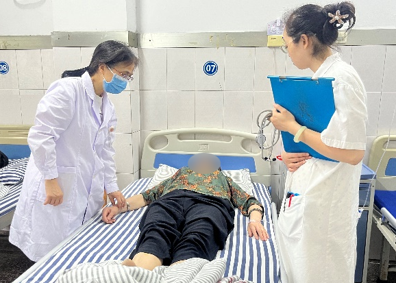 随后,周卓宁专家团队联合兴安县中医医院开展惠民义诊活动。义诊现场,有一位等候就诊的老年男性突发呕吐、意识不清、全身冒冷汗,周卓宁教授迅速至患者身旁查看患者,检查生命体征,发现患者嘴巴有呕吐物、口唇紫绀、面色苍白、不能言语、冒冷汗,初步判断为脑血管疾病,立即协助保持呼吸道通畅,并指导兴安县中医医院医务人员为病人开通静脉通道,并立即送CT室完善检查。周卓宁教授凭借着快速的临场应变和专业救治能力,让患者得以快速救治,病情得以控制,现场群众都为周卓宁教授竖起大拇指。