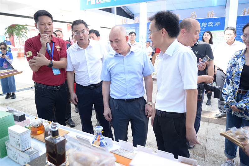 自治区中医药管理局党组书记、局长黎甲文参观我院药膳展示区及产品展示区