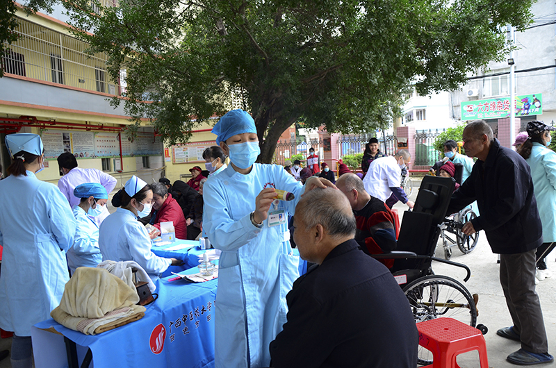 义诊现场,专家团队和志愿者耐心、细致地为养老院人员和前往就诊的居民解答各种健康咨询,提供体格检查、搭脉诊治,用药指导、血压测量等医疗服务,还为他们提供雷火灸、正骨推拿等中医适宜技术服务,受到了群众的欢迎。随后,志愿者们在养老院进行清扫,为养老院的居住人员营造了一个干净整洁的环境。