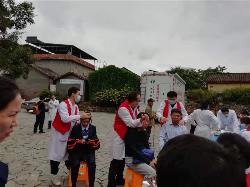 4月9日,应南宁市西乡塘区石埠卫生院邀请,我院医疗服务部组织外科第二、第四党支部,门急诊、健康管理第二党支部,内科第四党支部等多名党员志愿者,赴石埠三民艺术村开展党员医护人员义诊活动,践行“为群众办实事”,充分发挥基层党组织的战斗堡垒作用和党员的先锋模范作用,以实际行动践行党的群众路线,发挥所长服务群众,以实际行动献礼建党100周年。