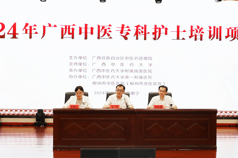 7月22日,2024年广西中医专科护士培训班在我院B座10楼举办,自治区中医药局党组成员、副局长潘霜,我院纪委书记彭定基出席开班仪式并致辞,来自全区各地的50名中医护理人员参加培训。开班仪式由我院护理部主任龙秀红主持。