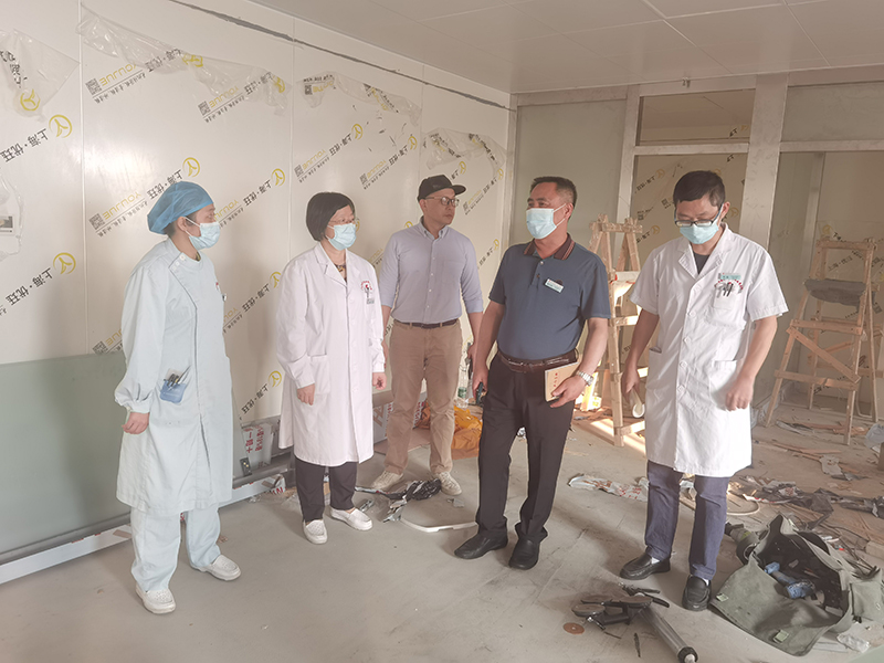 院领导在RIUC(呼吸重症监护室)施工现场