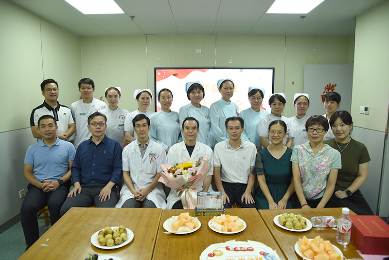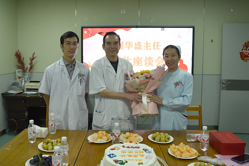 会后,彭定基向刘华盛教授送上纪念品,科室同事送上鲜花,大家合影留下这一难忘的时刻。