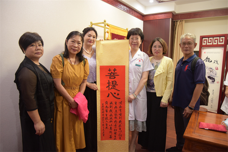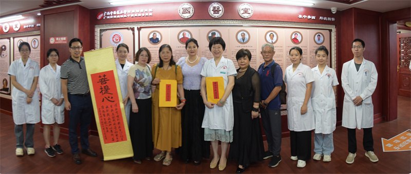 据姜女士介绍,为了表达对唐红珍教授深深的感激之情,几人特地请一名书法家朋友代笔写了2封感谢信和一副写有“菩提心”的书法作品赠送给唐红珍教授。在台湾,许多接受过唐红珍教授治疗的病友都希望能够表达自己的感激之情。虽然他们不能亲自来到广西,但他们通过姜女士和其他几位同胞转达了对唐红珍教授深深的谢意。