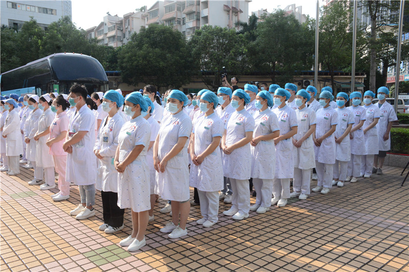 随着党史学习教育的深入开展,我院“我为群众办实事”的实践活动也在扎实推进。5月17日上午,我院22名医护人员在A座大门整装待发,他们将作为广西新冠病毒疫苗移动接种队成员前往自治区疾控中心集合,统一乘车前往广西各地开展新冠病毒疫苗移动接种工作,我院副院长陈锋以及医务科、护理部等相关职能负责人一同前往送行。