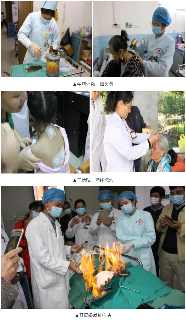大力倡导科室开展中医药外治,包括穴位敷贴,穴位注射,雷火灸,耳穴压豆,中医针刺,督脉灸,神灯照射,电脑中频、低频治疗等项目,同时开展中药辨证施治,宣传中医“治未病”理念,充分发挥中医外治在疾病治疗、慢病管理、养生保健、康复促进、健康养老等方面的作用,取得了良好的经济效益和社会效益。
