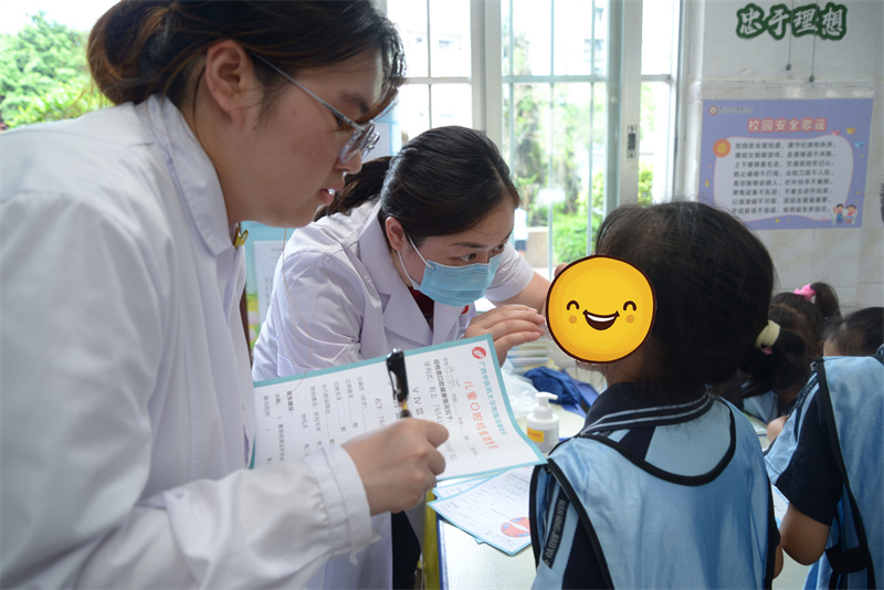随后,口腔科医生们为同学们进行了细致的口腔健康筛查,并记录填写“儿童口腔健康检查表”,让孩子们带回家,提醒家长们及时带孩子到口腔科进行专业的口腔检查及诊治,定期涂氟及口腔检查。