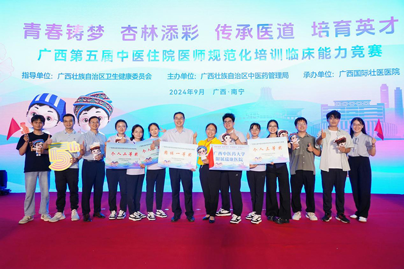 9月21日至22日,以“青春筑梦 杏林添彩 传承医道 培育英才”为主题的广西第五届中医住院医师规范化培训临床能力竞赛在广西国际壮医医院举办。来自全区13家中医住院医师规范化培训基地、3家中医助理全科医生培训基地的16支参赛队伍同台竞技。
