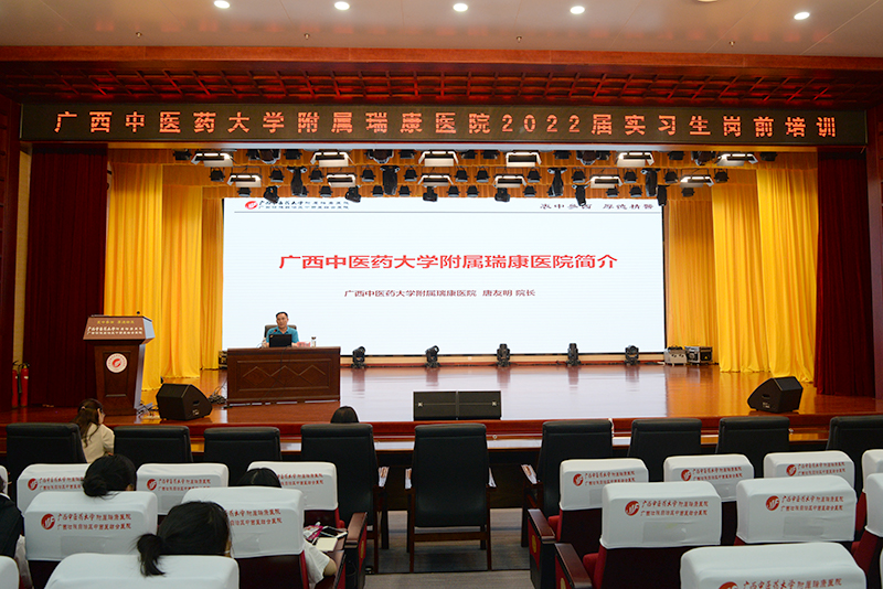 按照广西中医药大学等医学院校的实习生工作安排,2022届首批实习生共298人将到我院进行临床实习。为切实做好2022届实习生岗前培训工作,加强实习生的规范化管理,引导其更好更快地适应临床实习,提高临床教学质量,我院于5月31日起,在B座10楼进行2022届实习生岗前培训。医院院长唐友明,党委副书记、副院长陈日兰,副院长、总会计师庞刚,副院长韦思尊,纪委书记黄建民,副院长陈锋以及各教研室主任、副主任,各职能部门负责人,临床科室带教教师代表,教务科全体教师发及2022届实习生出席开班仪式。开班仪式由陈日兰主持。