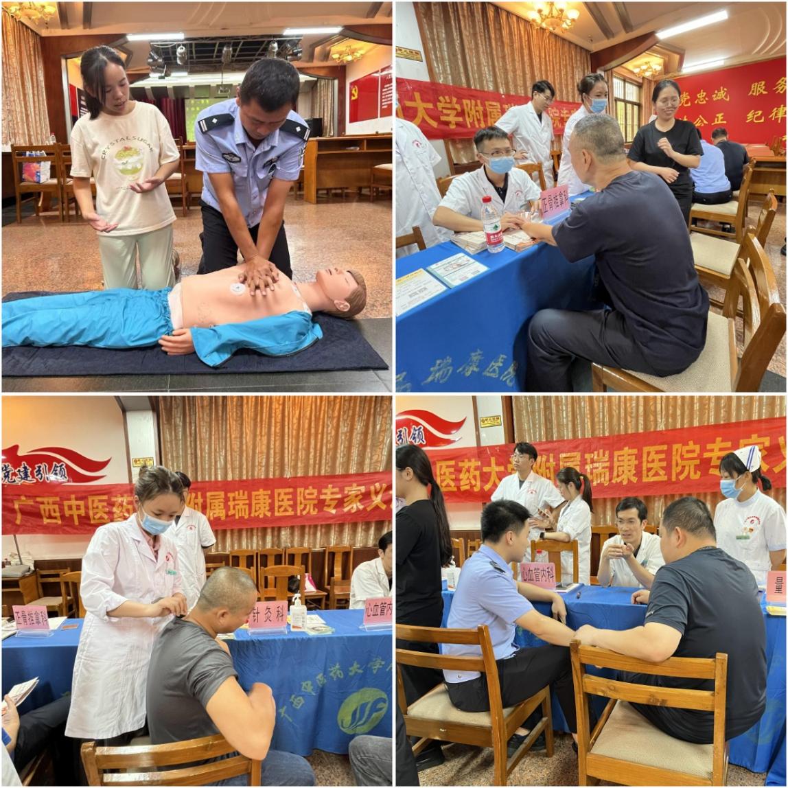 急诊科龚圣雯医生通过理论讲解和实际操作演示相结合的方式,详细介绍了心肺复苏的重要性、操作步骤和注意事项。民警们认真聆听,积极参与互动,纷纷上手进行实际操作,在专业人员的指导下,逐渐掌握了心肺复苏的正确方法。与此同时,心血管内科的医生们为民警们进行了心血管疾病的筛查和诊断,提供了专业的医疗建议。针灸科和推拿科的医生们则通过传统的中医疗法,为民警们缓解工作压力带来的身体不适,如肩颈疼痛、腰酸背痛等。