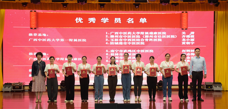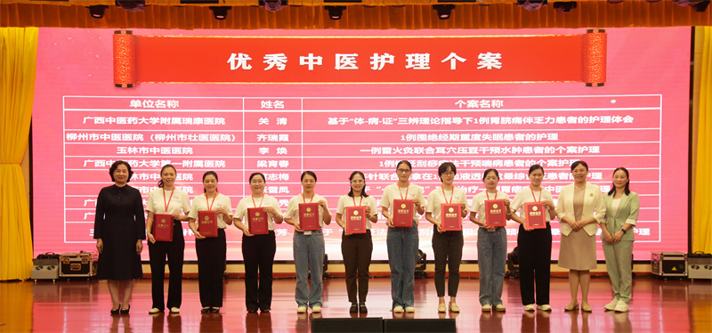 最后,与会的领导和嘉宾为学员们颁发了广西中医专科护士培训项目合格证书以及优秀中医护理个案奖、优秀学员奖。