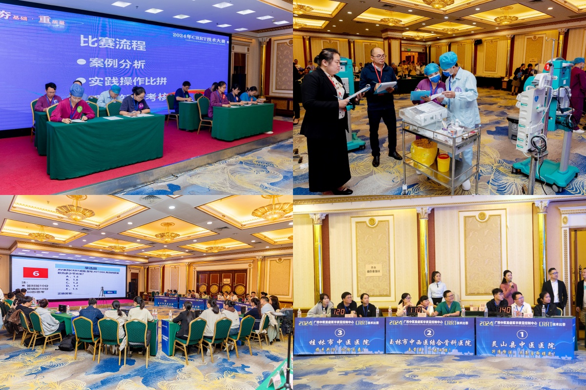 为提升我区中医重症救治领域医护人员专业技能,强化重症患者救治能力,共筑重症救治的坚固防线,11月23日,由广西中医重症医学质量控制中心主办,广西中医药大学附属瑞康医院重症医学科承办的“锤炼重症救治精英”2024年CRRT技术大赛在广西南宁隆重开幕。大赛吸引了广西各医疗机构重症相关科室的11支参赛队伍共33名医务人员热情参与,他们带着对重症救治事业的执着与专业素养,齐聚赛场,展开激烈角逐。我院副院长郑东林教授出席大赛并致辞,韦思尊教授任大赛裁判长,院长助理、大重症医学科主任伍民生教授担任仲裁,来自区内各大医疗机构同仁一百余人现场观赛。我院杨益宝主任医师、覃惠娟副主任护师与来自全区各大医院重症救治领域的资深专家担任评委。