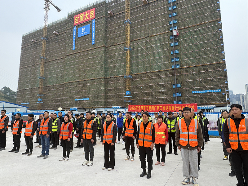 12月26日上午,2025年元旦春节期间广西工会送温暖行动启动仪式在广西中医药大学附属瑞康医院凤岭南医院建设项目现场举行。自治区人大常委会副主任、党组副书记,自治区总工会主席黄伟京出席启动仪式,并宣布2025年元旦春节期间广西工会送温暖行动启动。自治区总工会党组书记、常务副主席管理年出席启动仪式并讲话。自治区总工会副主席、党组成员黄韬主持启动仪式。自治区住房城乡建设厅副厅长、总工程师杨栋,自治区总工会党组成员、经费审查委员会主任黄海华,南宁市人大常委会副主任、市总工会主席陈尧参加活动。我院党委书记高宏君、副院长李铭,中建三局一公司广西分公司党委书记、总经理黄德钊参加活动。