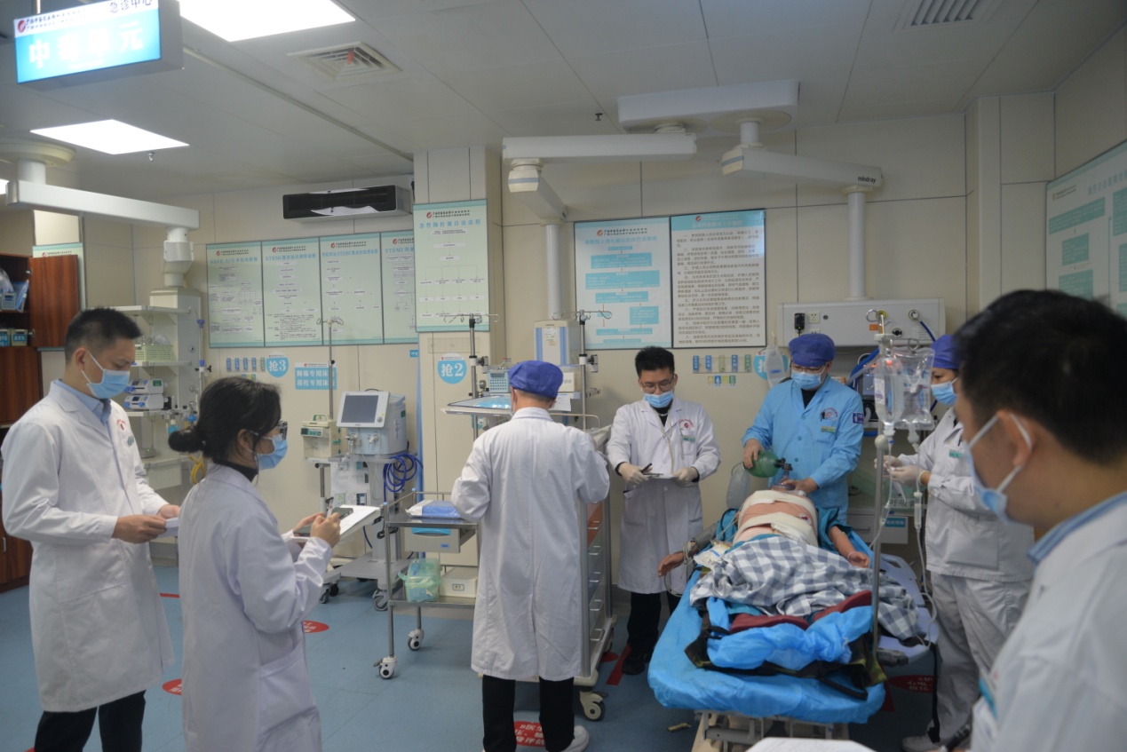 为进一步提高急诊急救医疗服务水平和医疗质量安全,强化医务人员对严重创伤患者的救治水平,优化科室间抢救协调配合流程,进一步推进创伤中心建设工作,1月3日下午,我院在急诊科组织开展了一次严重创伤救治的应急演练活动。此次演练由我院副院长郑东林、韩杰共同主持,医务部组织各科室骨干医护人员参与,共同观摩了这场紧张而有序的演练过程。