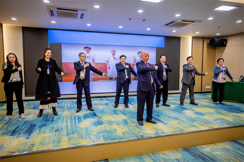 在学术交流环节,多位国内外知名专家学者发表了精彩的演讲。国医大师韦贵康教授以“手法医学国际交流34年回顾与展望”为主题,详细介绍了其学术流派的发展历程。韦贵康教授分享了其团队在手法医学领域的多项研究成果,并在现场带领大家学习自创的养生功法。他强调,手法医学的未来发展需要更多的国际交流与合作,以推动这一传统医学的现代化和国际化。